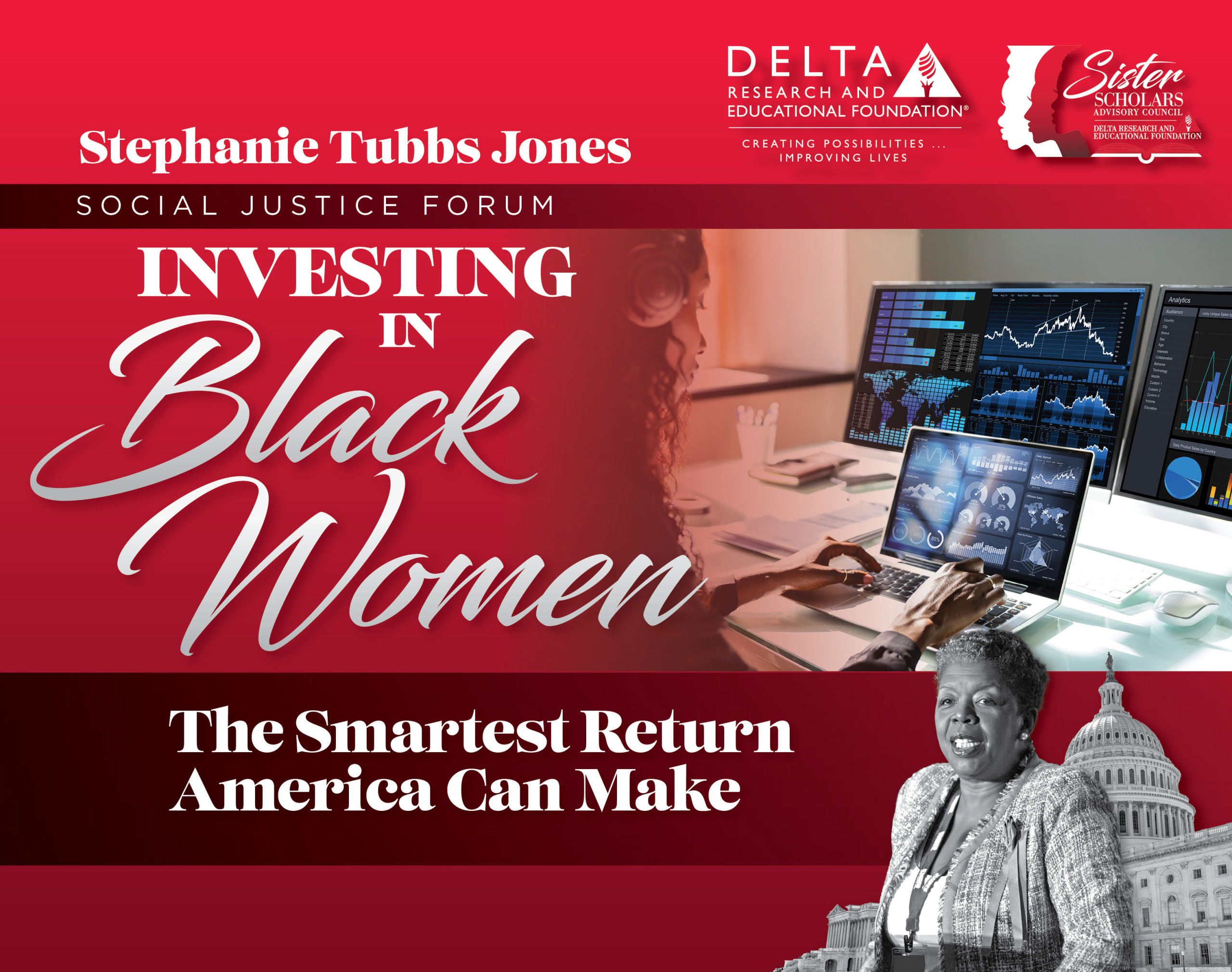 On Monday, March 23, 2026, 8-9:30am at the Grand Hyatt Hotel in Washington DC., Delta Research and Educational Foundation (DREF) will host Plenary Session V of Delta Days in the Nation’s Capital,featiuring the16th Annual Stephanie Tubbs Jones Social Justice Forum: “Investing in Black Women: The Smartest Return America Can Make”