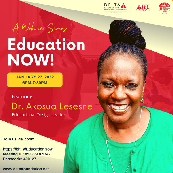 Dr. Akosua Lesesne is an educational design leader with expertise in Education for Black liberation, grades 6-12, and the Black teaching tradition. She will be joining us as the guest speaker for our very first Education Now! Webinar series of 2022. She began her career as a high school social studies instructor and has 17 years of teaching, instructional coaching, and district-level leadership experience within five major predominantly Black and Latinx urban school districts along the east coast. Akosua was one of the chief architects of a flagship district-wide Black male mentoring program with Broward County Public Schools, served on the grant writing team that won the district a $5 million High School Graduation Initiative grant from the United States Department of Education to expand this program, and oversaw the expansion of this program model throughout the district. Her work defending and inspiring our most vulnerable youth has earned her praise from students, parents, colleagues, and renowned educational scholars alike. In her latest book, McArthur “Genius” Award-winning educator and renowned author Lisa Delpit wrote this about Lesesne’s impact, “Your tireless efforts to give our children brighter futures is exhausting to watch, but so inspires me to continue the struggle.” In addition to founding and leading Lesesne Learning, Akosua is the Founder and CEO of The Lesesne Collective Corp d/b/a Sisters in Education Circle (SIEC) and the SIEC Retreat Host. She earned a Bachelor’s degree, cum laude, from Harvard University, a Master of Arts in Teaching from Tufts University, and a Doctorate at the University of Pennsylvania Graduate School of Education.