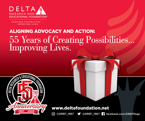 It’s that wonderful time of year—the joyous holiday season! This year is indeed wonderful and joyous for the Delta Research and Educational Foundation (DREF) as it recognized its 55th anniversary in 2022. We look forward to your year-end charitable donation to continue our programs that support African American women and their families. Click on the subject line for DREF Board President, Renee L. Harper’s holiday message and donation link. We Thank You!